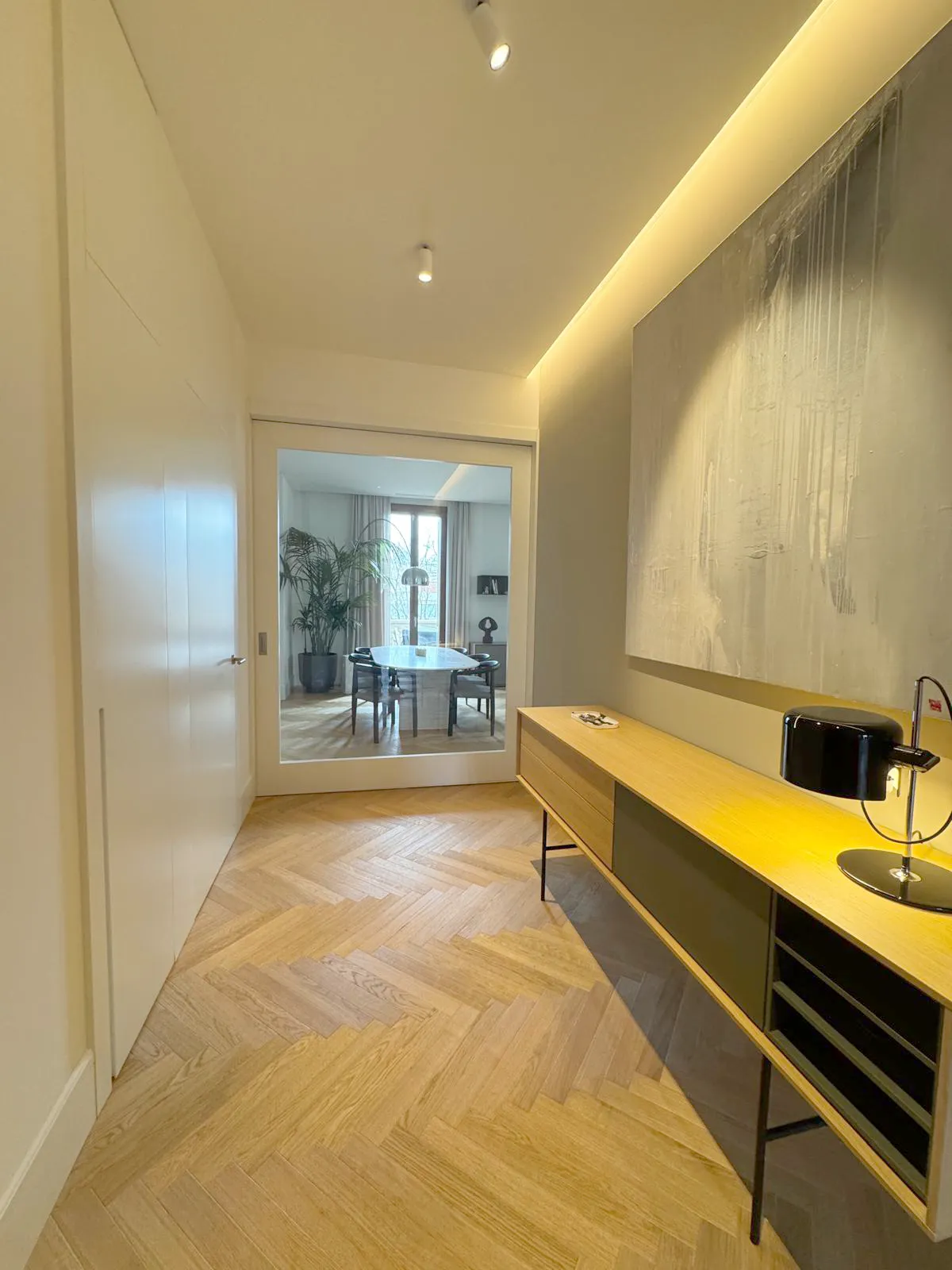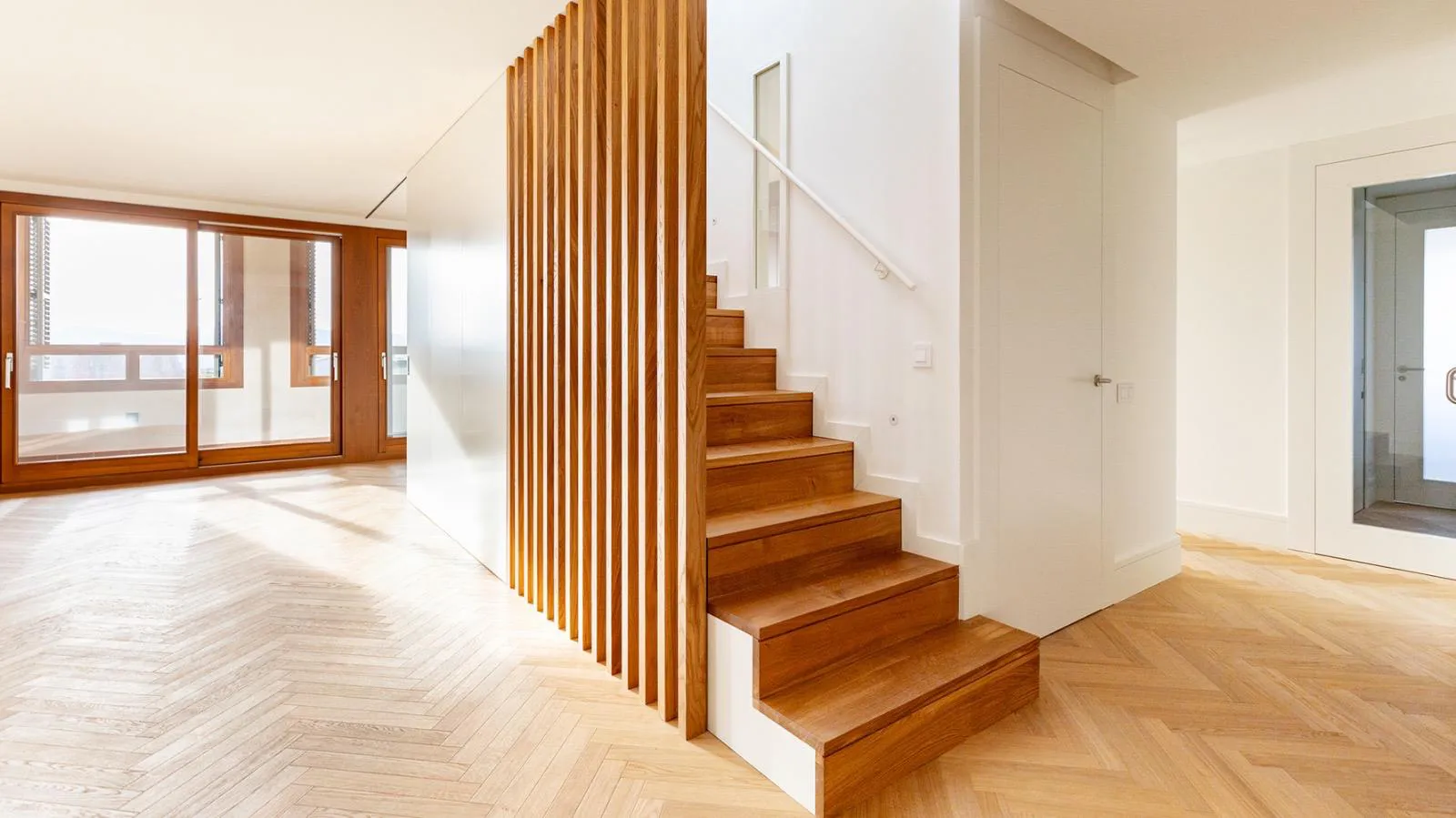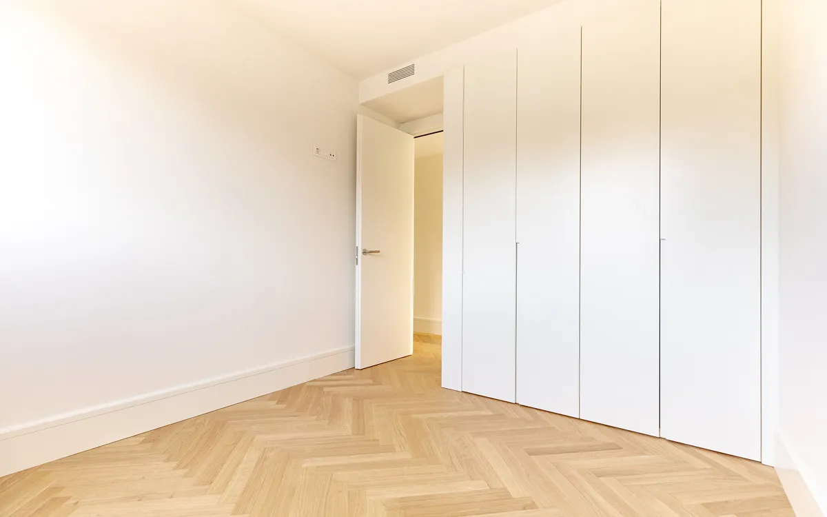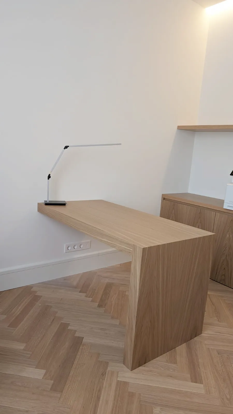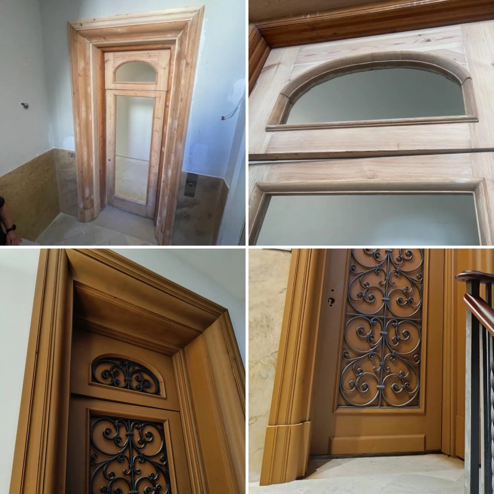 Els treballs realitzats inclouen armaris a mida lacats en blanc per a les habitacions dissenyats per optimitzar l’espai i integrar-se amb l’arquitectura interior, porta corredissa de grans dimensions amb vidre que permet separar amb elegància sense perdre lluminositat, panelat divisori d’escala que aporta continuïtat visual i calidesa a l’espai de pas, escriptori a mida amb calaix integrat funcional i discret adaptat a les necessitats de l’usuari, passamà recuperat que hem restaurat per mantenir el vincle amb l’estètica original de la casa, porta d’entrada del bloc i dels pisos amb reixat tradicional en homenatge al treball artesà i a l’arquitectura local, rebedor dels pisos pensat per acollir amb calidesa i ordre i la restauració d’elements originals en fusta donant una nova vida a peces amb valor històric i emocional.