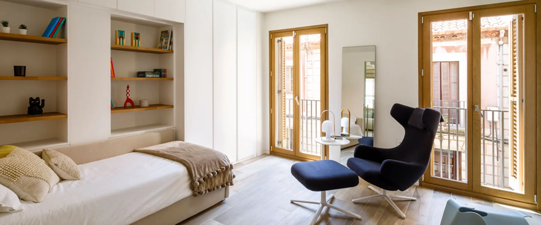 Al projecte d’obra nova Clos de Sant Francesc, situat a Barcelona, hem intervingut en múltiples espais de l’habitatge amb solucions de fusteria a mida, tant a l’interior com a l’exterior.