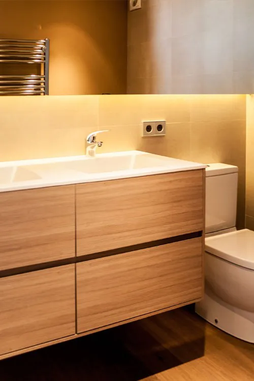 L’actuació ha apostat per materials càlids i naturals, destacant especialment l’ús extensiu de fusta tant a l’interior com a les façanes i tancaments exteriors, creant una sensació d’harmonia i coherència en tot l’espai. Aquesta elecció no només aporta confort visual i tacte agradable, sinó que també connecta el projecte amb criteris de sostenibilitat i durabilitat.
