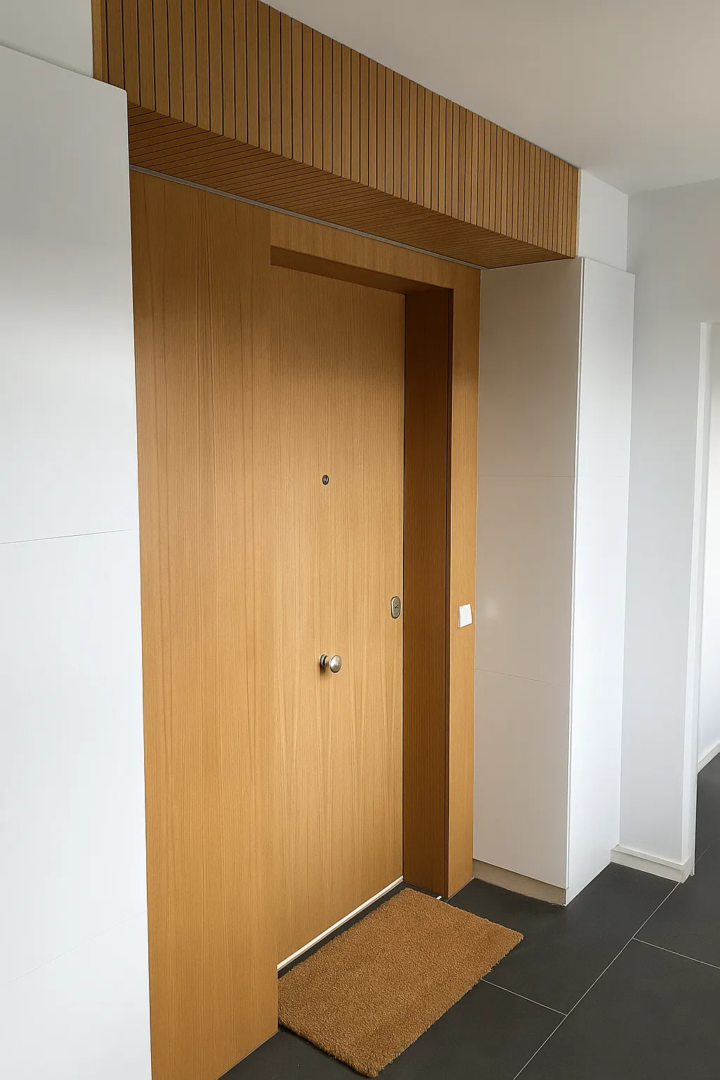 Finalment, hem fabricat les portes d’entrada als pisos, mantenint la mateixa línia de disseny i qualitat en tots els detalls.